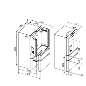 MULTIDOOR/FRENCH DOOR 181 x 91 cm Acciaio Inox French Door con Ice&Water dispenser + Congelatore a 2 cassetti estraibili+ SmartDevice classe D tecnologie BluPerformance / DuoCooling / BioFresh / NoFrost / 1 compartimento VarioTemp misure 181 cm x 91 cm x 72 cm volume utile 216 + 94 + 223 l