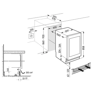 CANTINETTA VINO SOTTOPIANO 86-92 cm Temperatura a 1 zone tecnologia TempProtect Plus / HumiditySelect classe F volume utile 114 l (44 botellas)